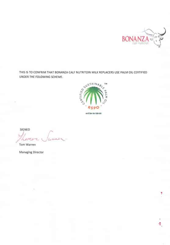 Bonanza Calf Milk Replacers-Proud to offer palm oil and GM free options